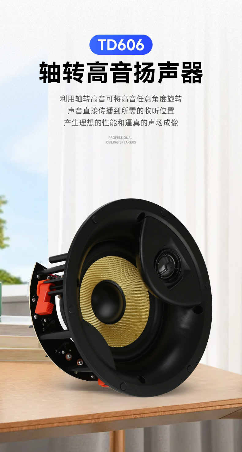 ◆轴转高音扬声器利用轴转高音可将高音任意角度旋转,声音直接传播到所需的收听位置。产生理想的性能和逼真的声场成像;