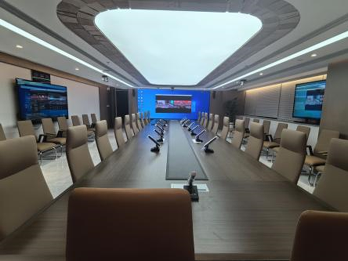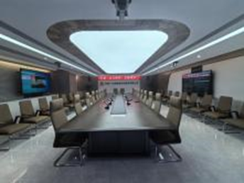 贵州中铁十七局集团城市建设有公 司 ,采用无线会议系统MS-8012、 无线会议K-84、信号分配器、反馈 抑制器 、 中控矩阵的组合, 搭配信 号分配器的使用 ,整个会场声音分 布均匀 ,不断频, 同时采用中控矩 阵系统集中智能控制, 使会场实现 智能化的现代办公室新模式。
