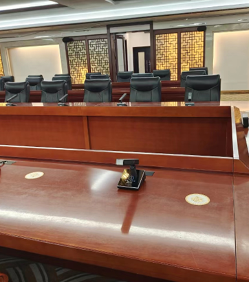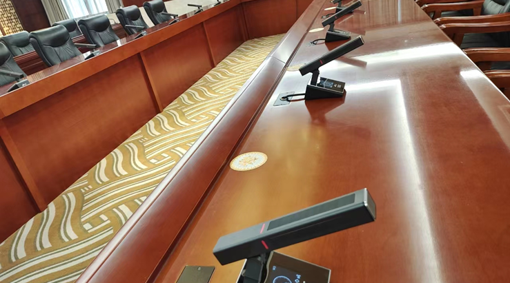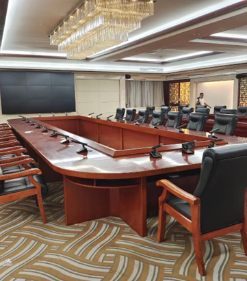 重庆市某人民政府会议室改造项目已经圆满完成 ,并 且得到了领导的高度赞赏!这一切离不开我们的产品—— 北极声数字智能会议系统。在这次会议室改造项目中 ,我 们采用了北极声数字智能会议系统的整套解决方案 ,包括 22支MS-8011数字智能会议系统、 6只MS-912全频12寸 专业音箱 、 数字反馈抑制器MS-850 、 音频处理器MS - X48 、电源时序器TS-7011以及MS-9916带4编组调音台。 这些设备的协同工作 ,为会议室带来了全新的音频体验。 首先, MS-8011数字智能会议系统采用了先进的技术 ,解 决了超过80CM以上的拾音距离高灵敏拾音问题。其次 , 数字反馈抑制器MS-850和音频处理器MS-X48的应用 ,进 一步提升了音频效果。它们能够准确识别并抑制反馈声音, 避免了会议室中出现的噪音干扰 ,让每一位与会人员都能 专注于会议内容。