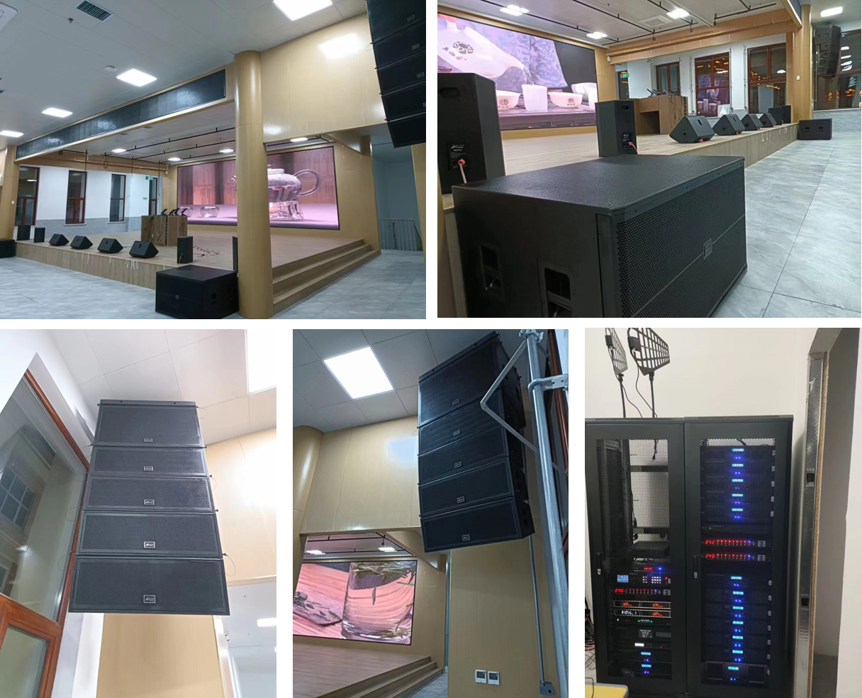 采用北极声的双10寸线阵8+2、超低音 TC-18、返听MS-913两对、演出麦克风 MS-X19A、信号分配器MS-701A、无 线会议系统MS-8012组成的多功能演艺 厅 ,声音分布均匀 ,声压足 ,现场测试 效果甲方很满意。