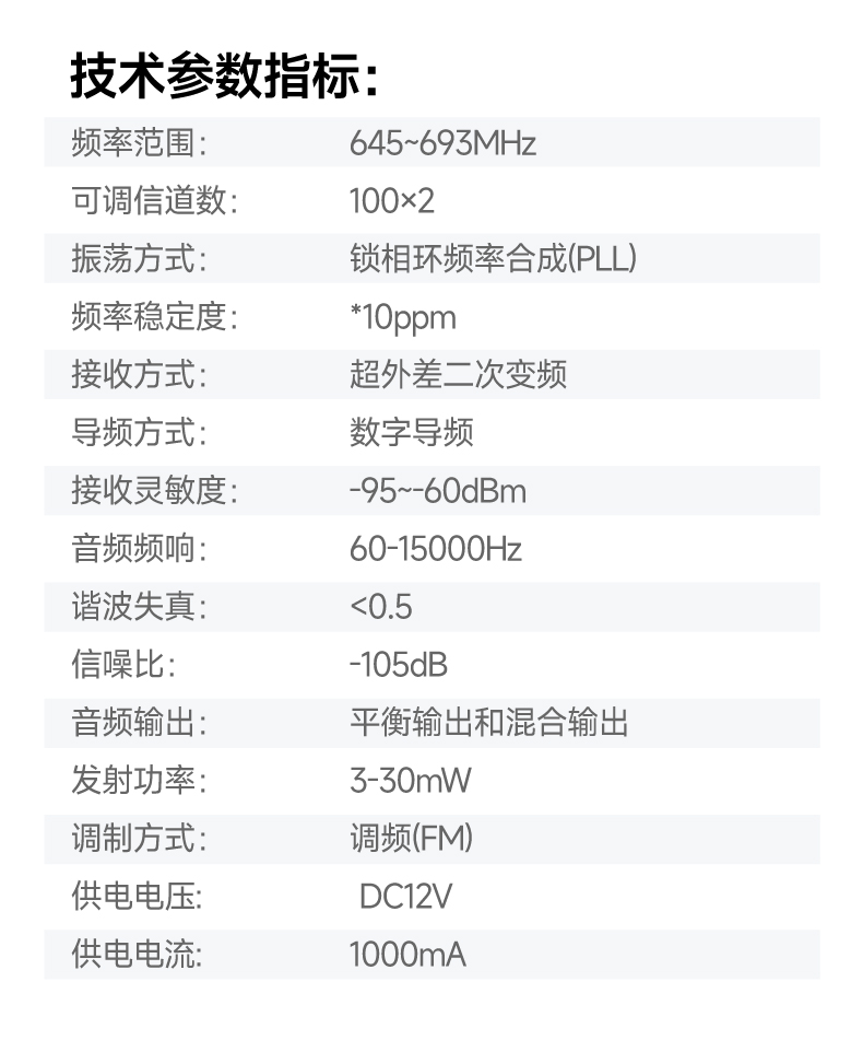 载波频段:UHF640-690MHz