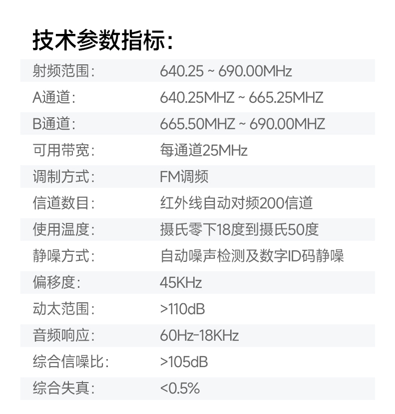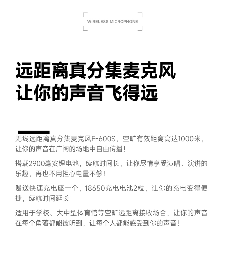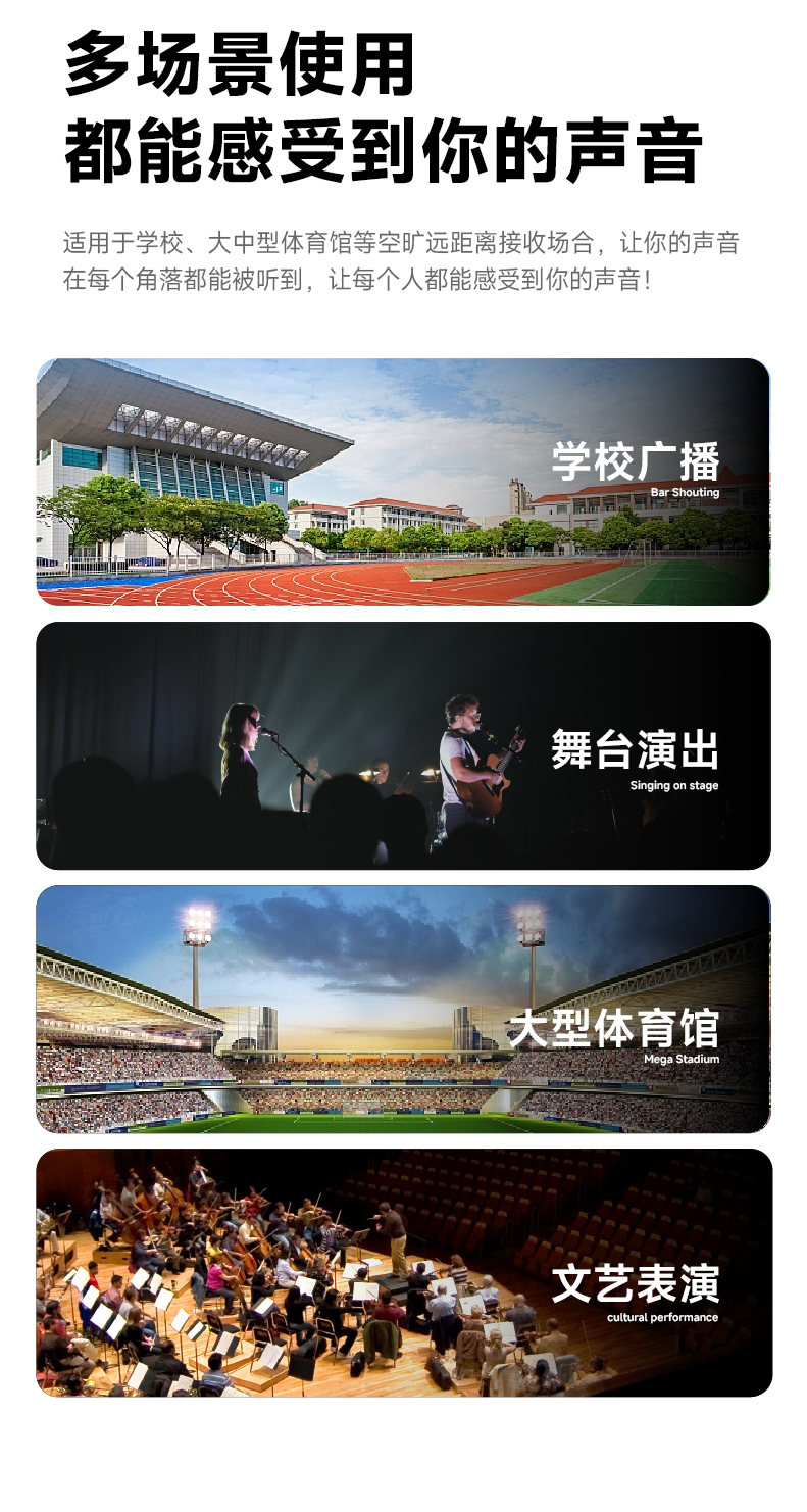 1.本产品是一款专为特定场景打造的工程级无线真分集麦克风,适用于如学校操场、体育馆这类空旷且需远距离传输的场合;