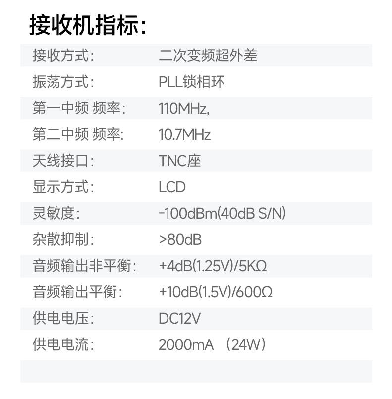 中频频率:第一中频:110MHz,第二中频:10.7MHz