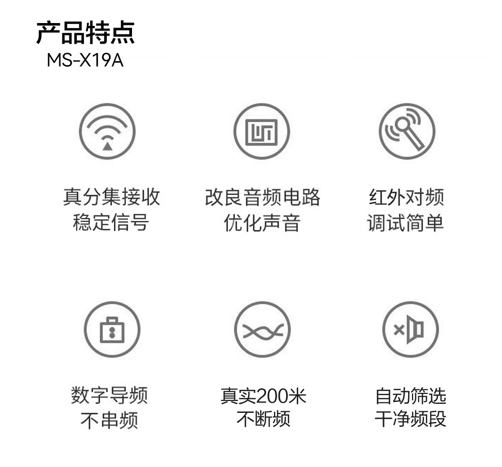 5.先进音码调制锁定功能,能够更好地避开干扰和消除开关机冲击噪声;