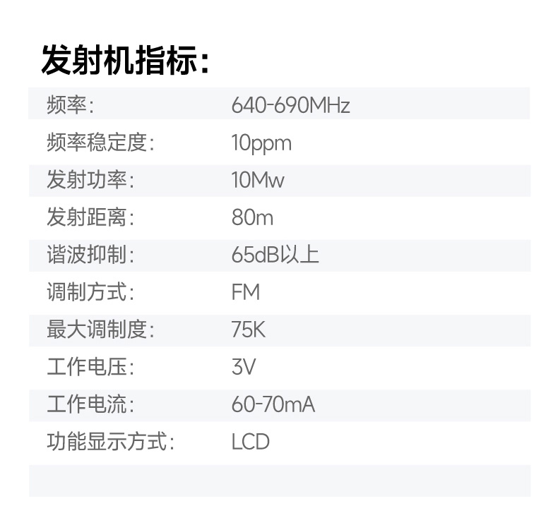 发射机指标: