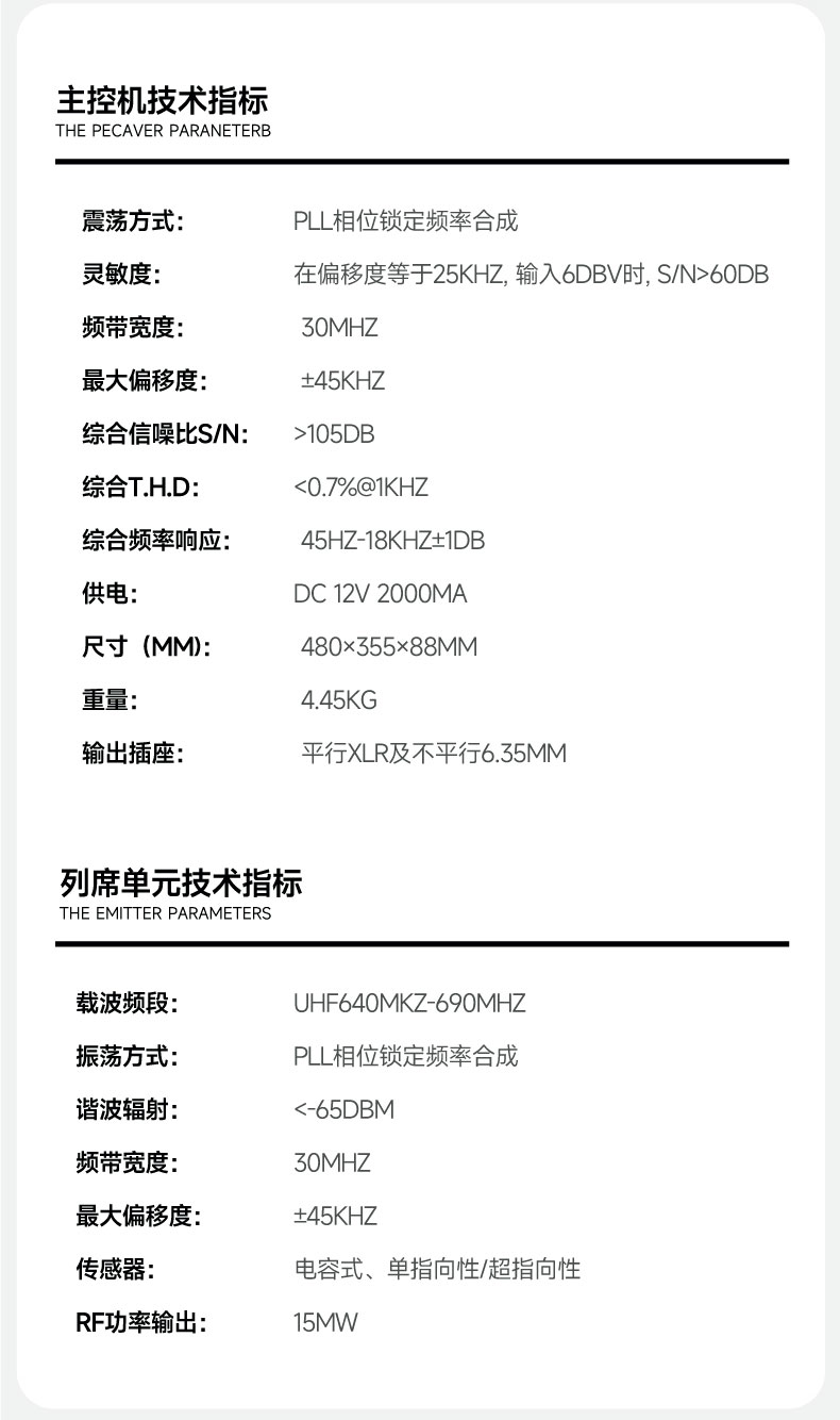 载波频段:UHF640MHz-690MHz;