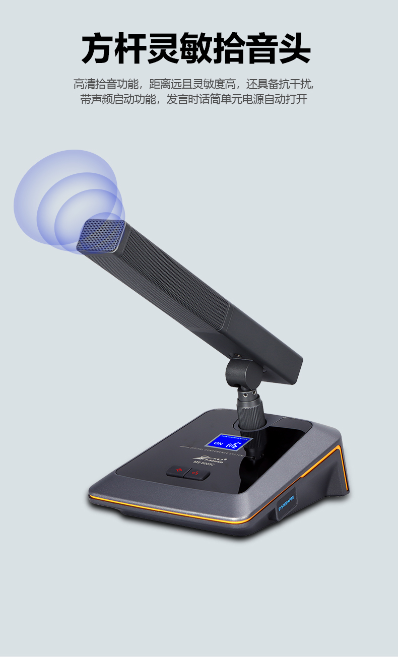 话筒头部带发言灯圈,可显示单元发言、关闭状态;