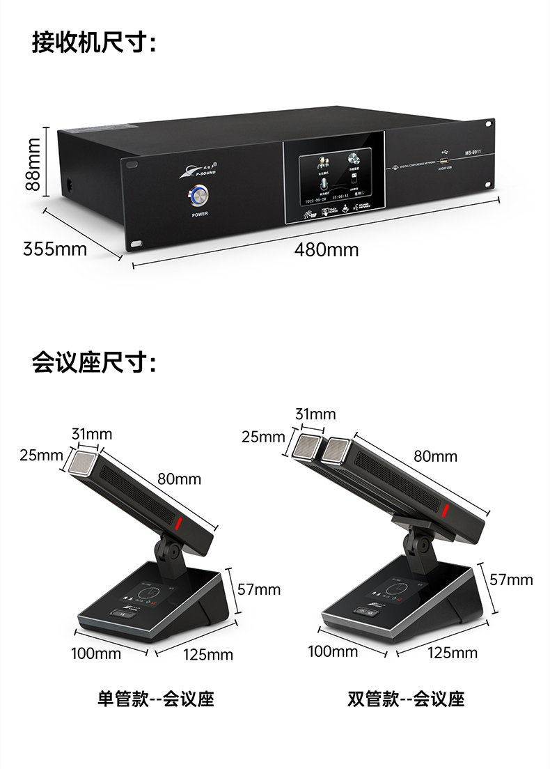 MS-8011C/D 主席单元/代表单元(单讨论型/带摄像跟踪型)(单方管/双方管)