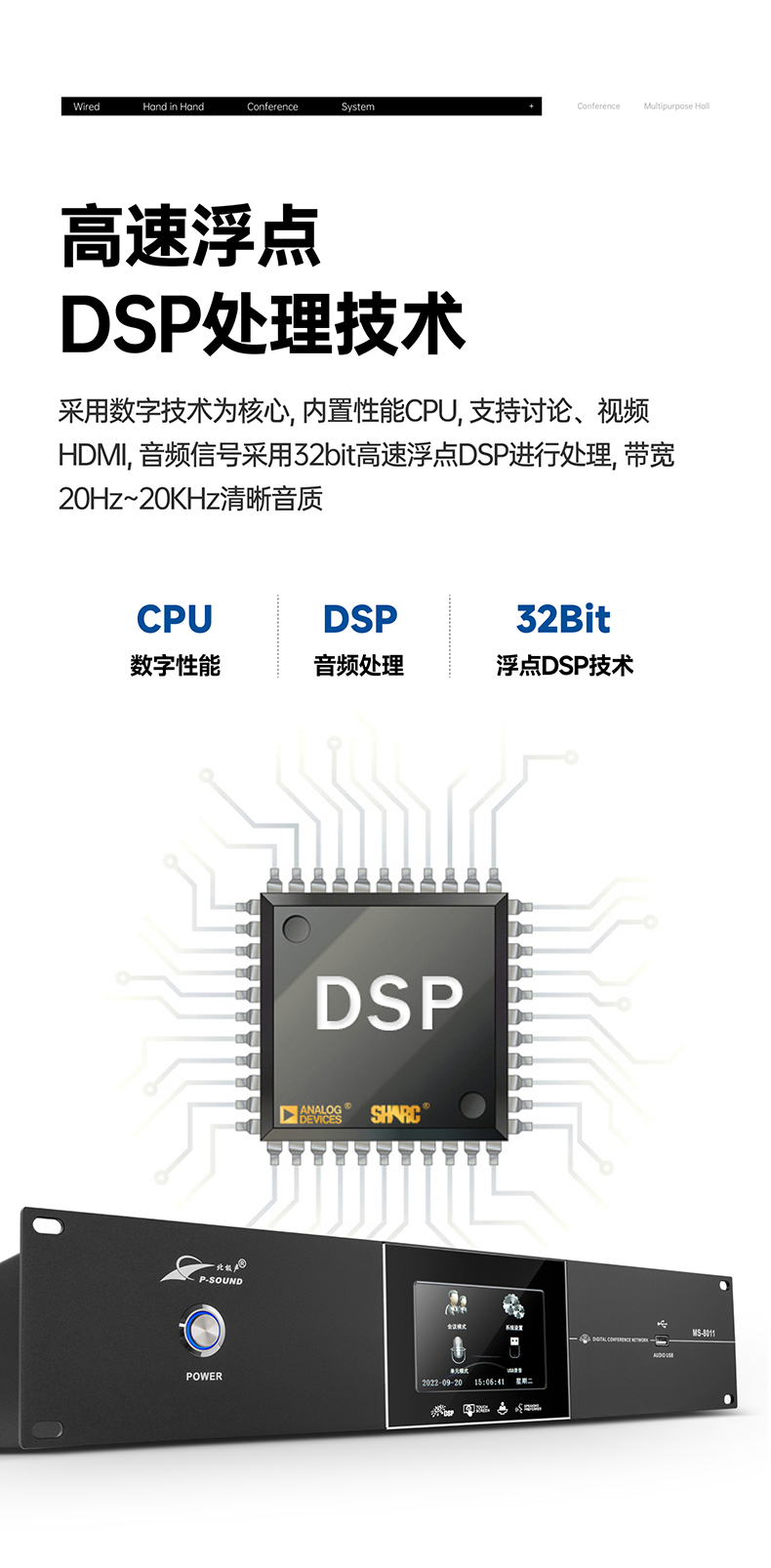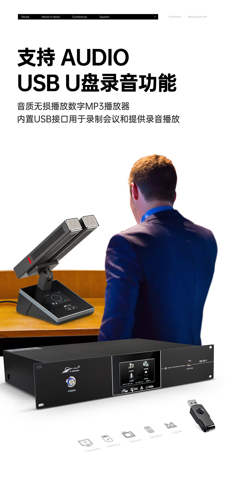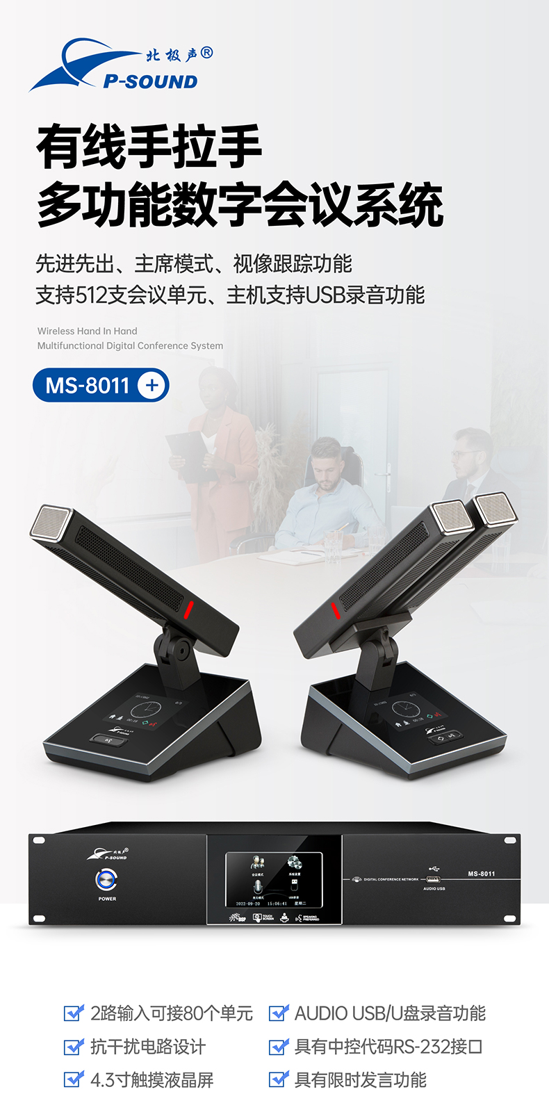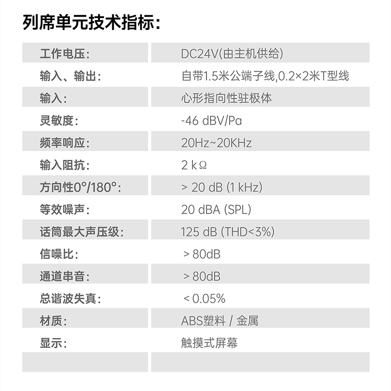 带声频启动功能,发言时话筒单元电源自动打开;