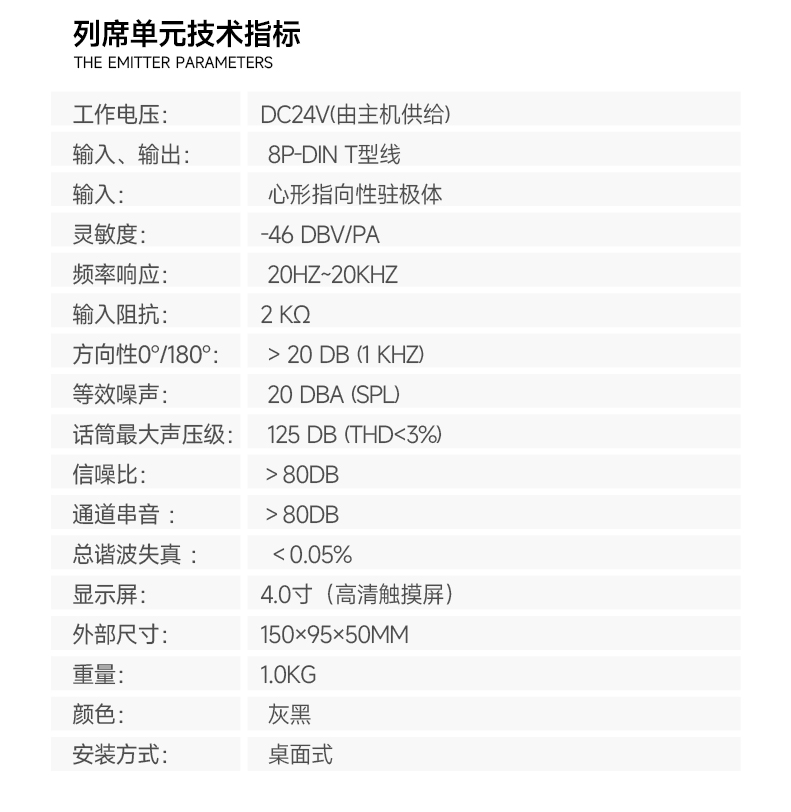 8.单台主机通过扩展电源最多可接256台会议单元;