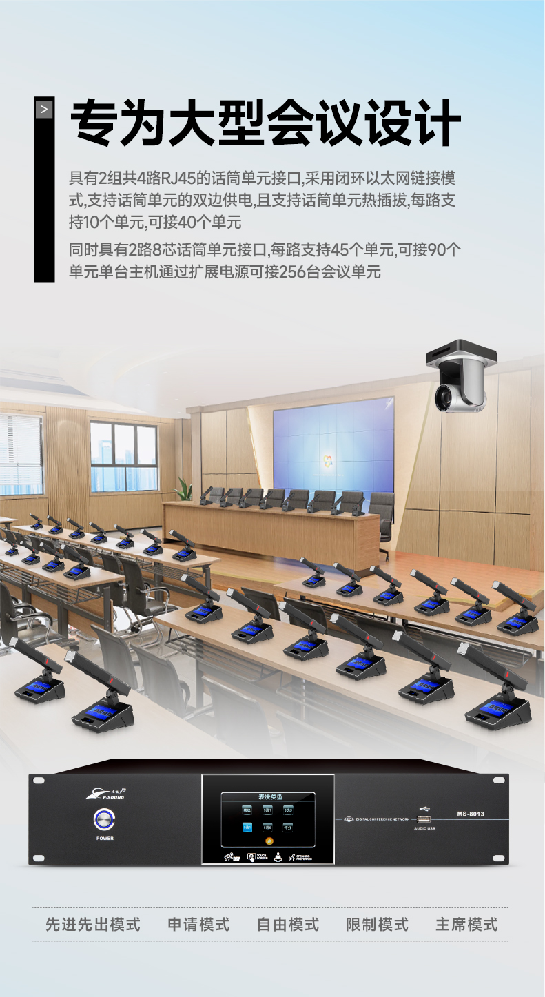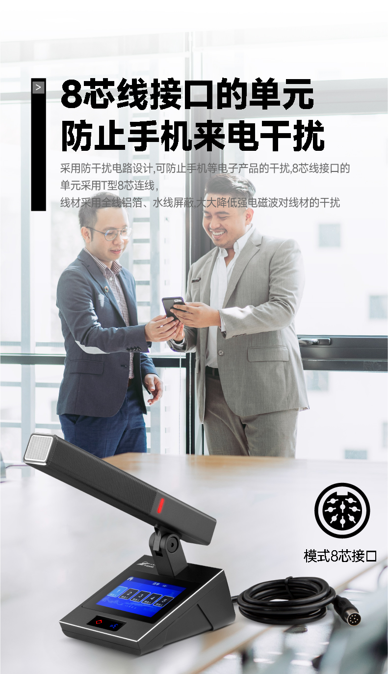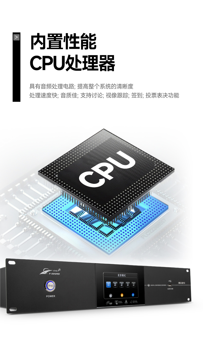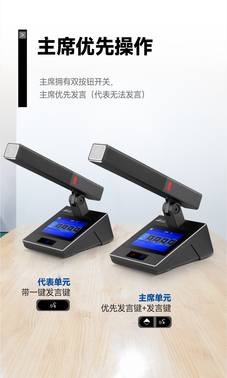 1.采用全数字会议技术,基于数字网络架构开发,内置专业CPU处理器,处理速度快,音质佳,支持讨论功能;