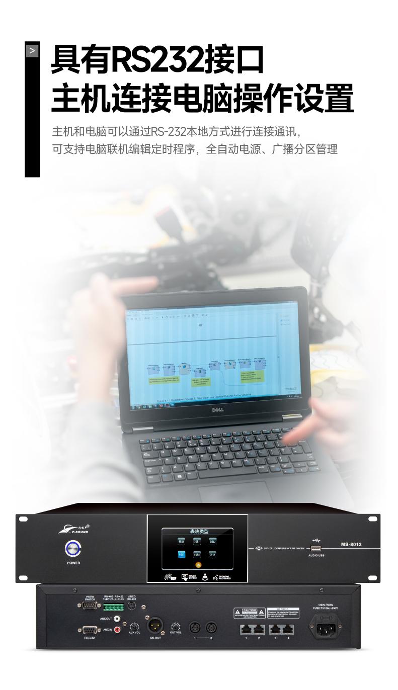 16.具有RS232接口,可连接电脑对主机进行操作设置;