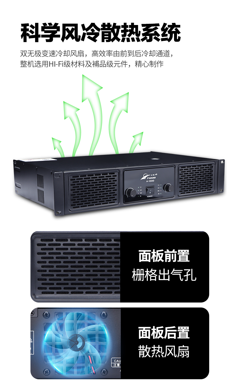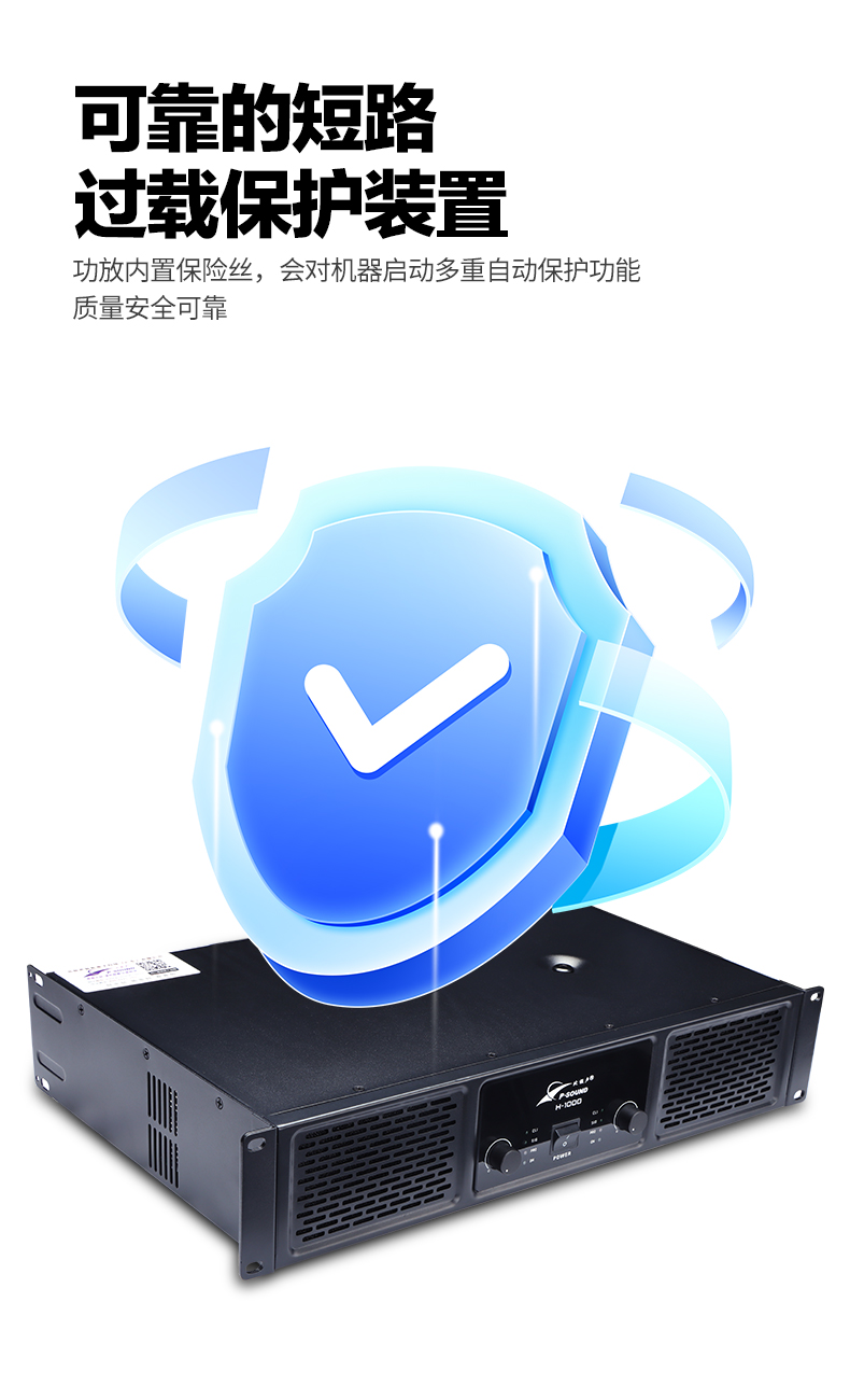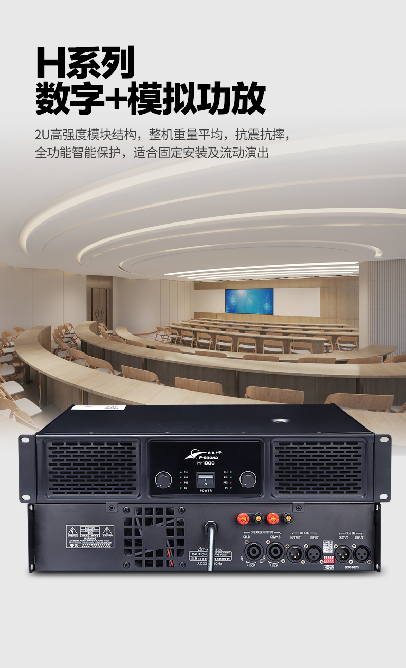 2.2U高强度模块结构,整机重量平均,抗震抗摔,全功能智能保护,适合固定安装及流动演出。