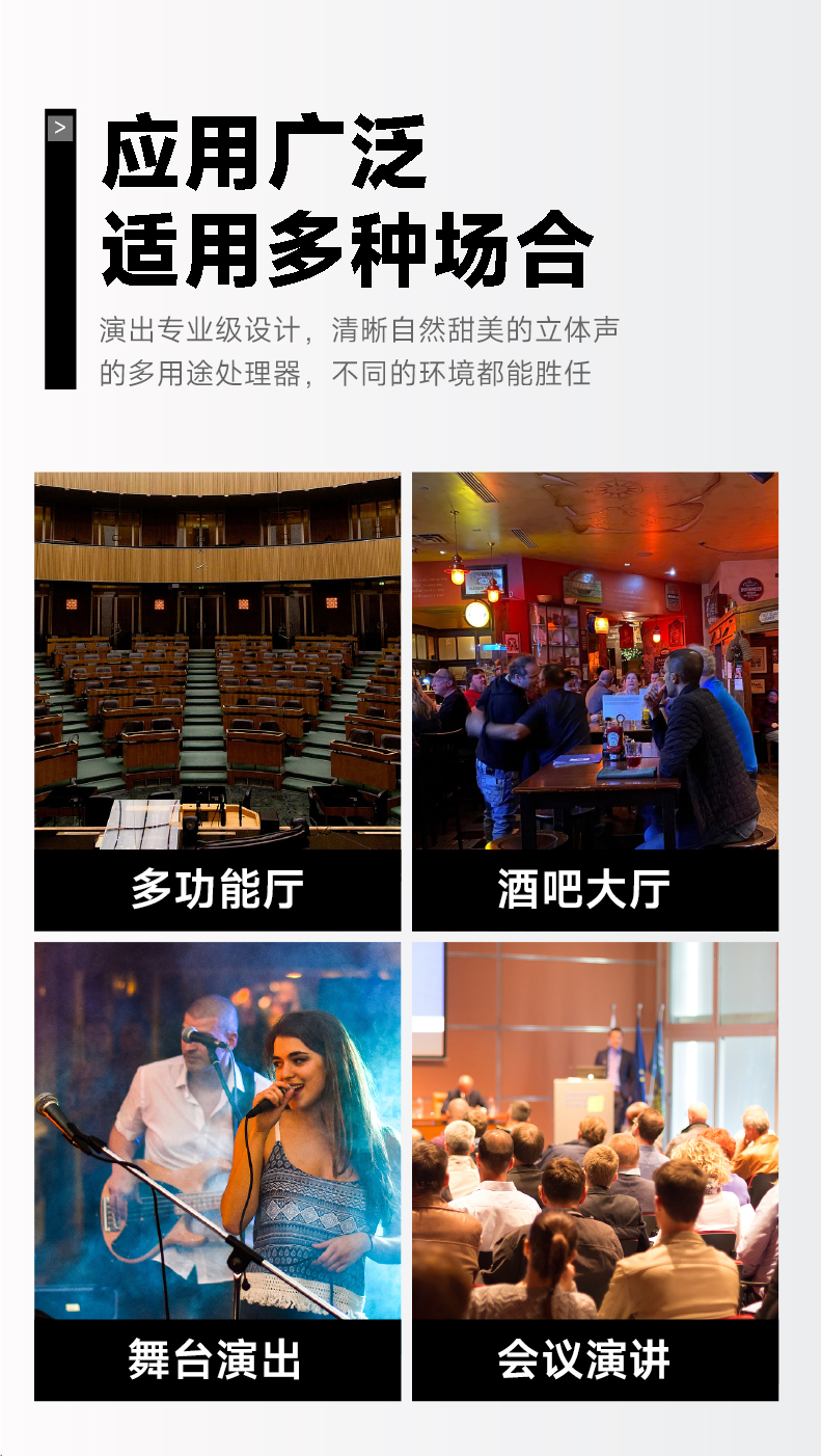 5.每一路输入通道分别支持48V幻象供电,正反向,静音,陷波式反馈抑制,8段参量均衡,自动增益,压缩器扩展器等等功能。