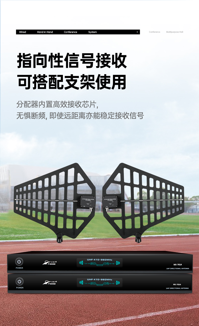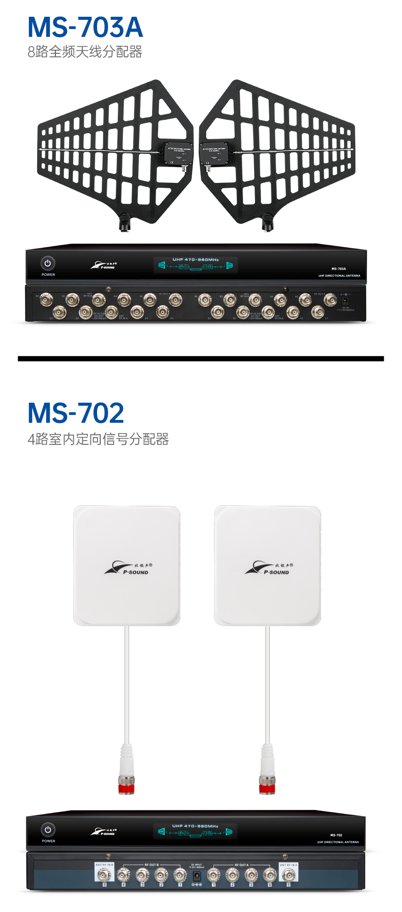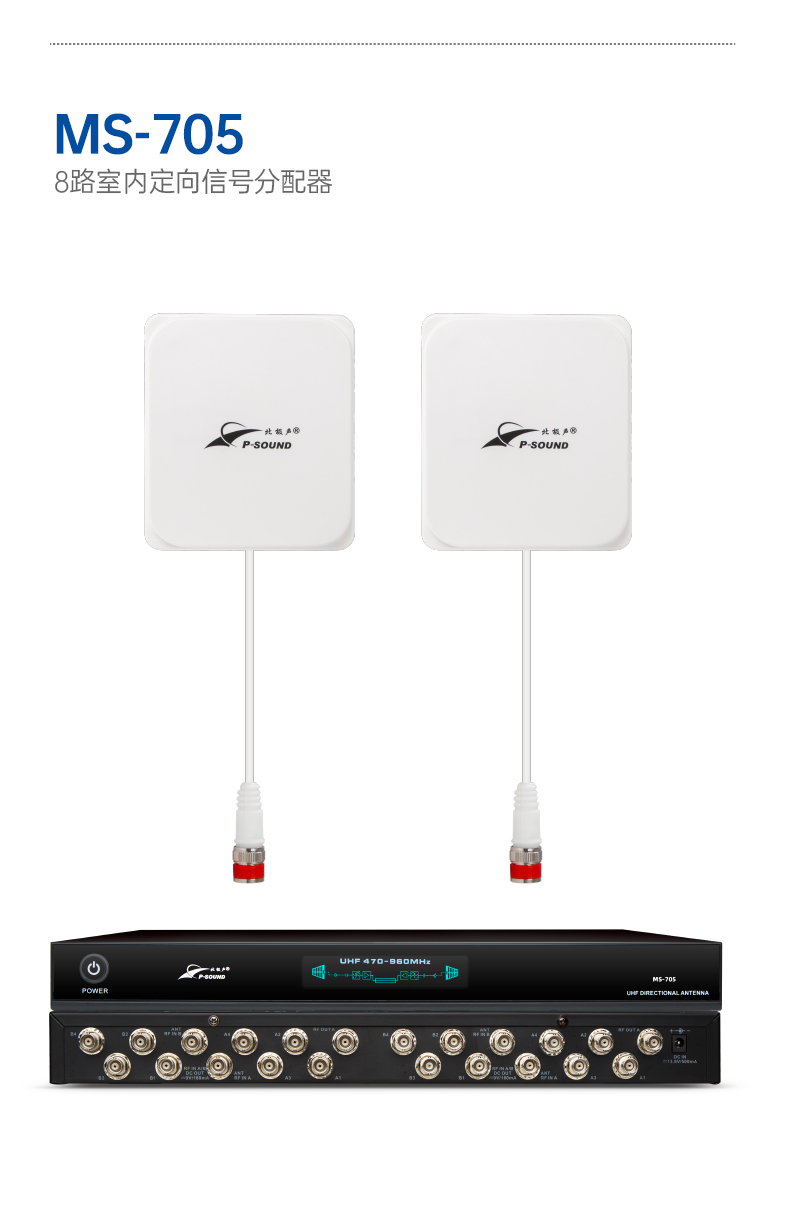 UHF全频段天线分配器,它可以把一对天线的信号传输到多台带多讯道系统的接收机。