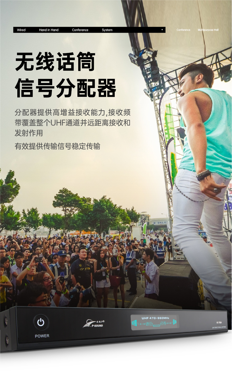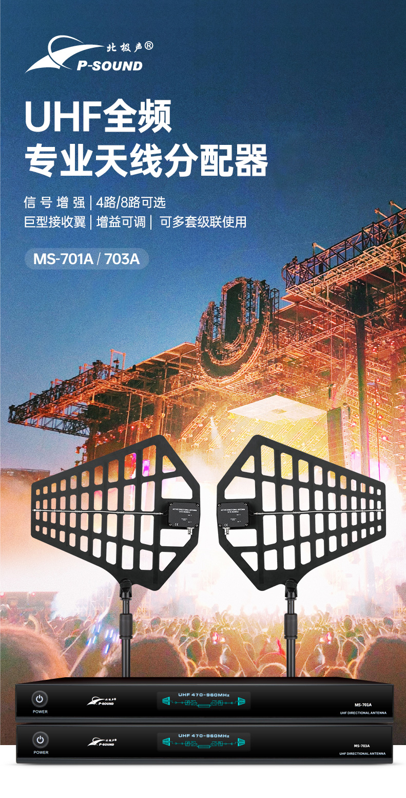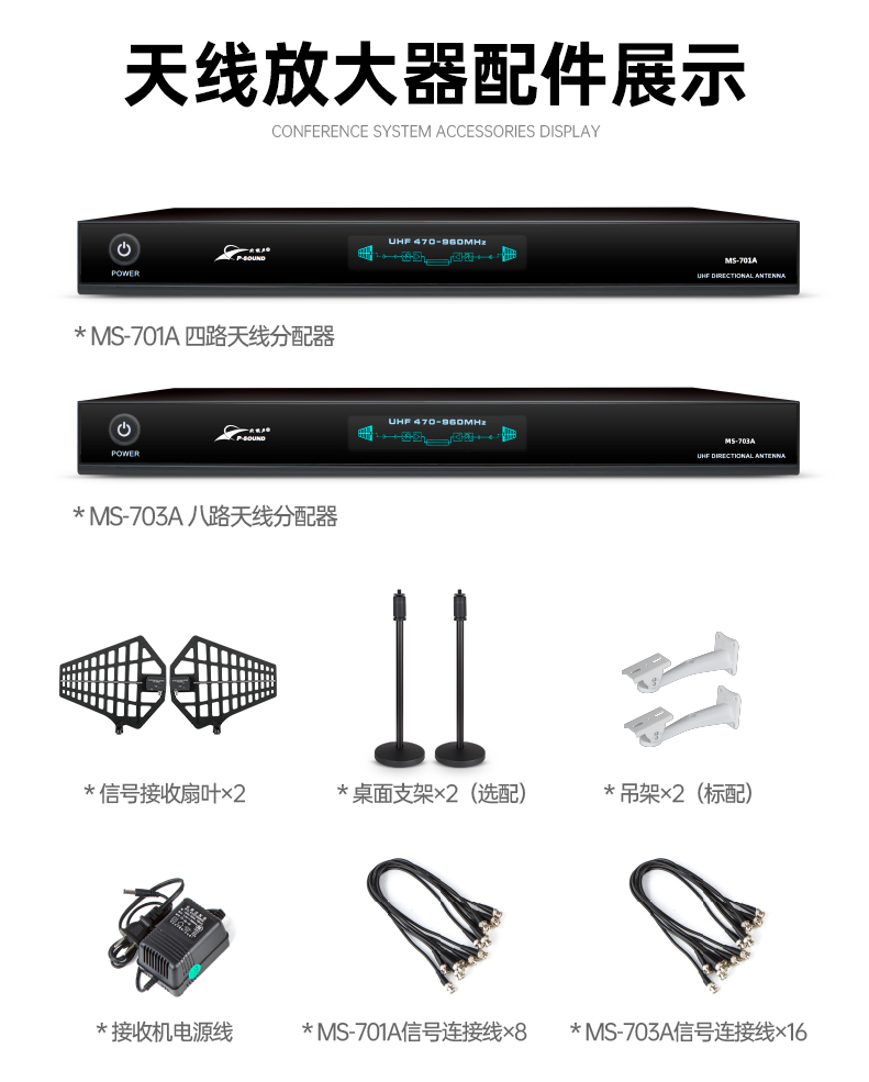 UHF全频段天线分配器,它可以把一对天线的信号传输到多台带多讯道系统的接收机。