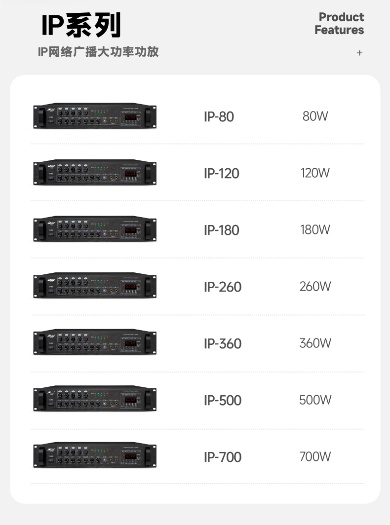 IP系列网络功放(80W、120W、180W、260W、360W、500W、700W)