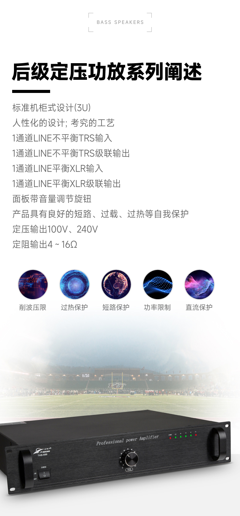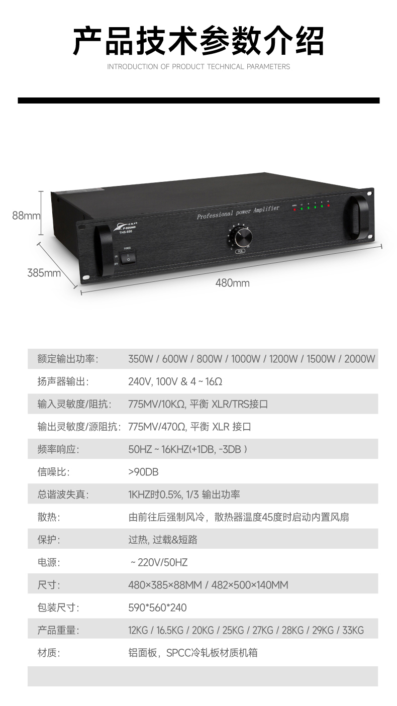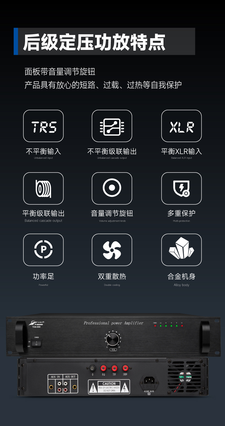 THS系列纯后级定压功放(350W、500W、650W、800W、1000W、1200W、1500W、2000W)