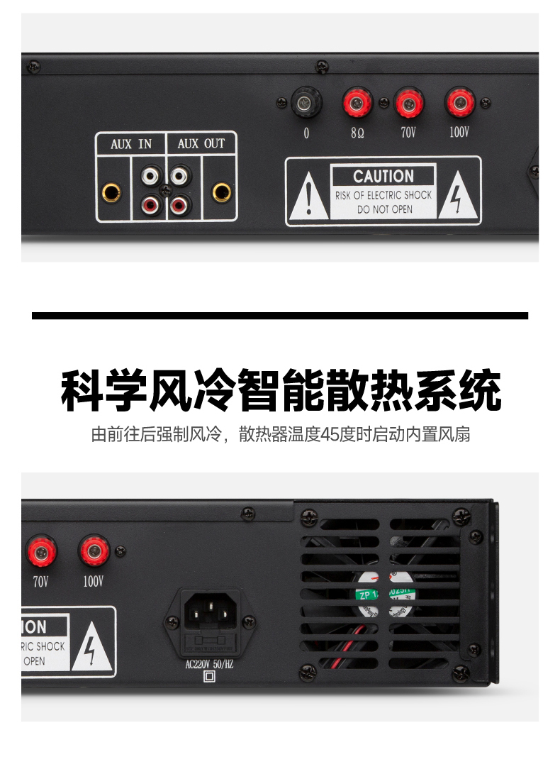 5.2种功率输出方式:定压输出100V、70V和定阻输出4~16Ω。