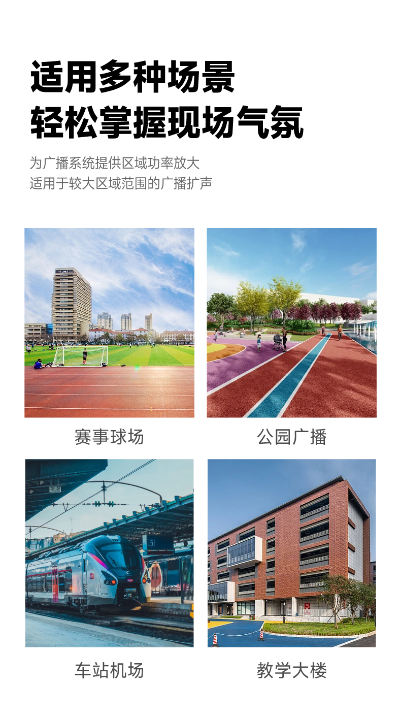 2.为广播系统提供区域功率放大,适用于较大区域范围的广播扩声。