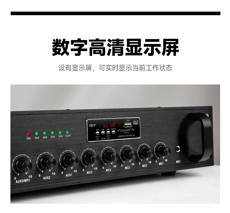 5.信噪比:MIC 输入:50dB,AUX输入:80dB
