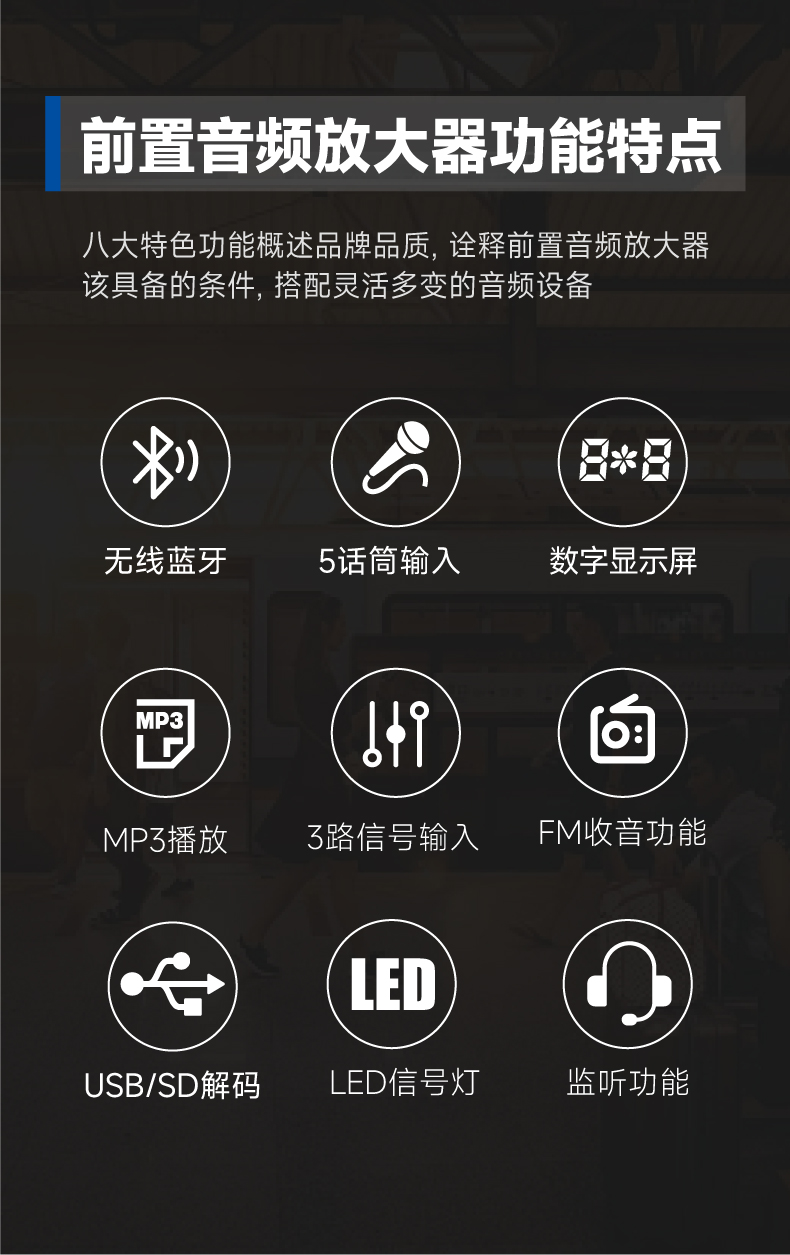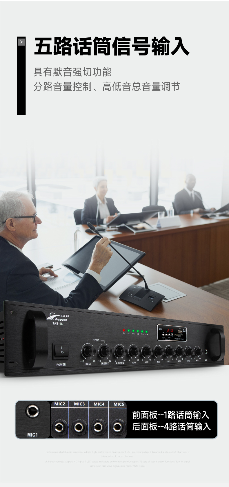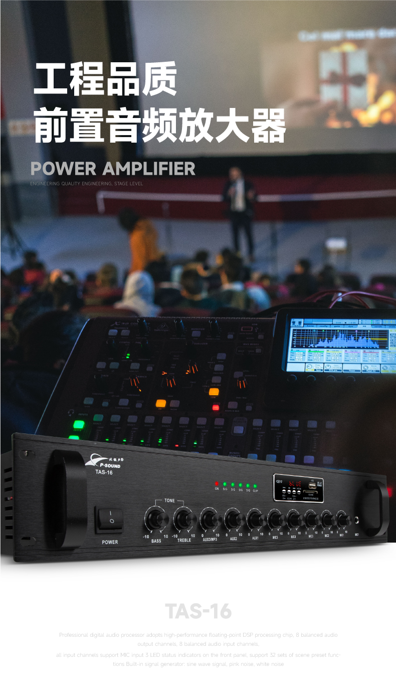 1.具有多路话筒、音频以及紧急信号输入线路,单通道输出的前置放大器;