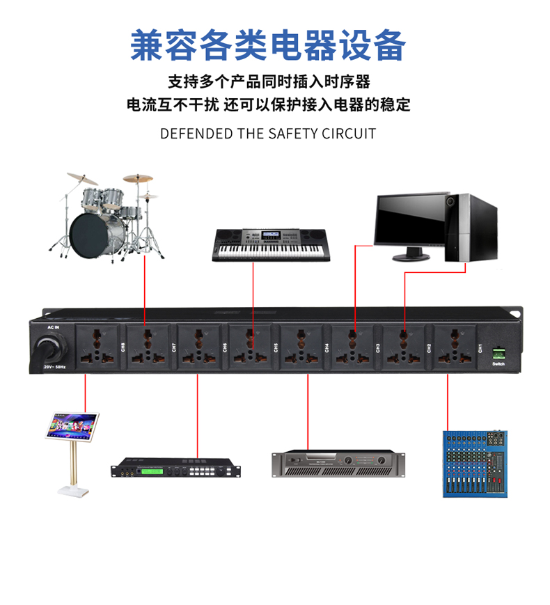 3.其用途广泛,适用于音响、电脑、电视广播系统,及其它按顺序启动的用电设备。