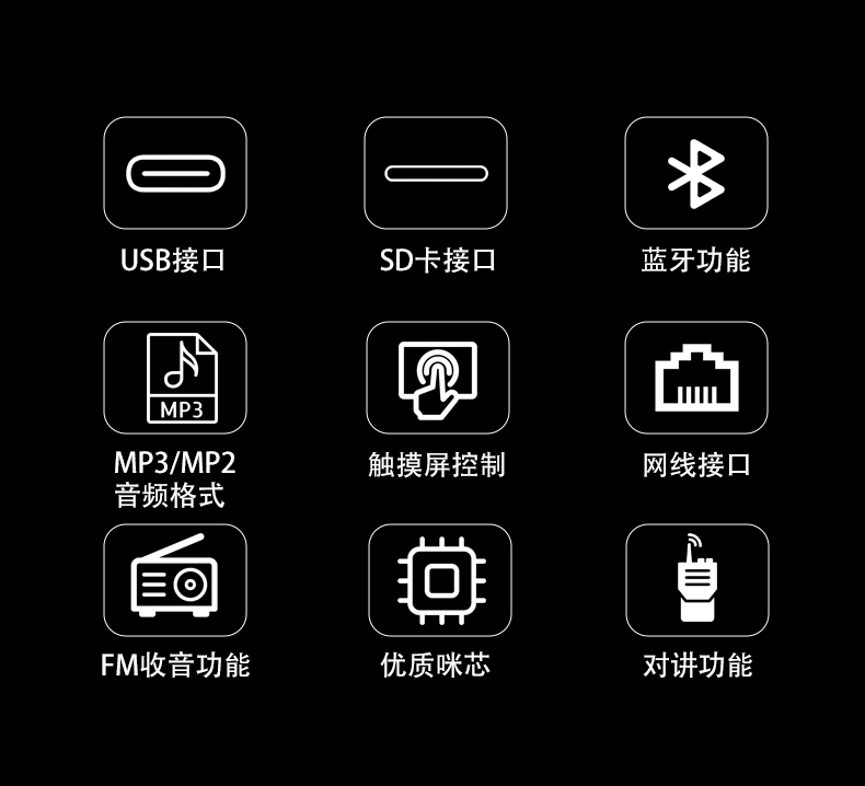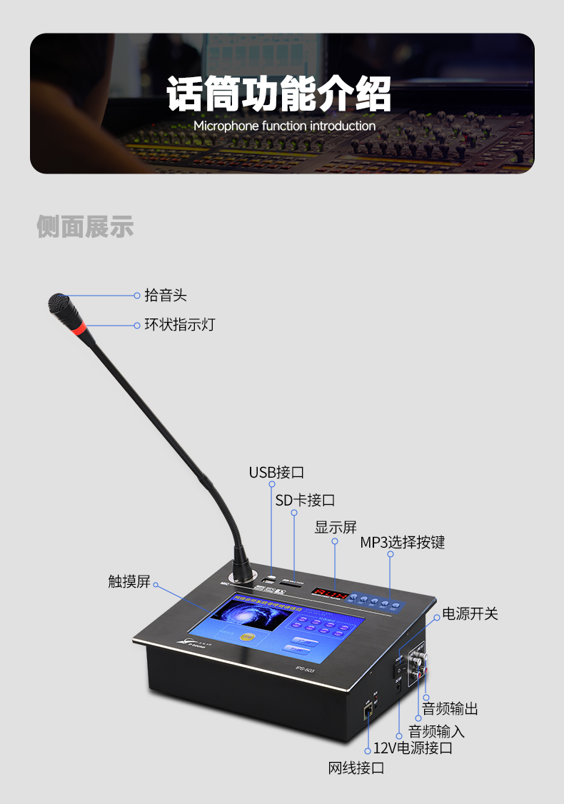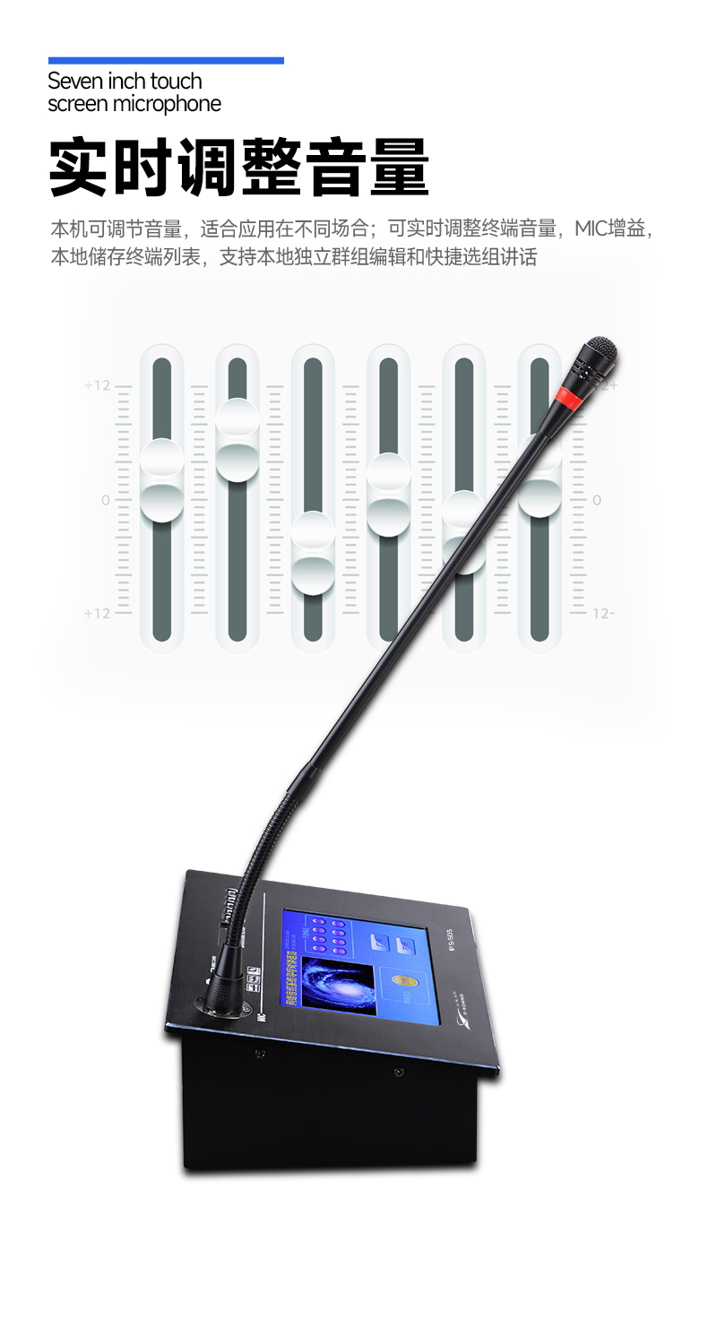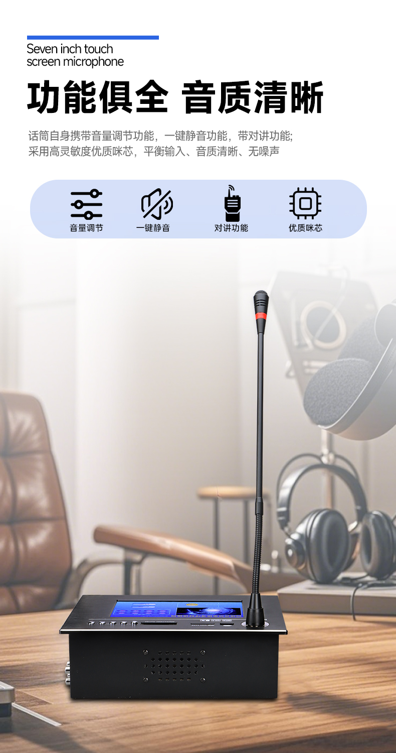 ■话筒自身携带音量调节功能,一键静音功能,带对讲功能;