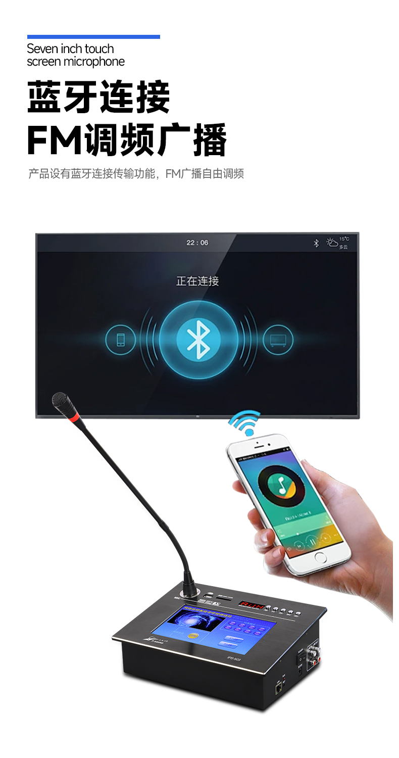 ■话筒自带USB、SD卡接口、FM收音功能、蓝牙功能,1路线路输入输出;