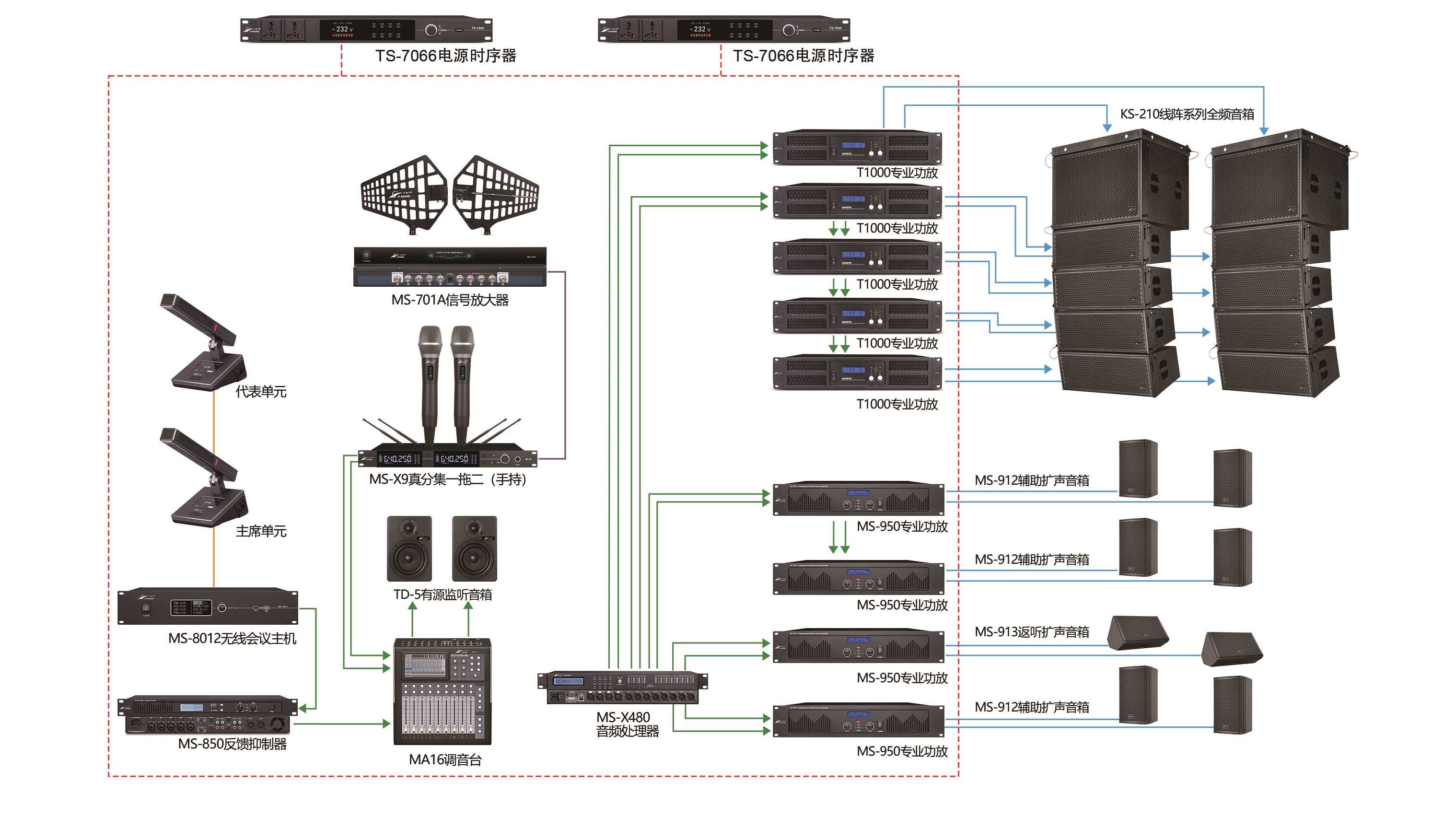 在成都某政府单位的多功能厅 ,一套精 心配置的音响设备展现出了卓越的性能。 北极声 2 组 4+1 双 8 寸线阵 ,搭配 12 寸返听 MS-913 共 4 只 ,真分集演出麦 克风 MS-X19A 、 有线会议系统 MS - 8011、信号分配器 MS-701A 以及音频 处理器 MS-X48 共同组成了强大的音频 系统。2026-01-22